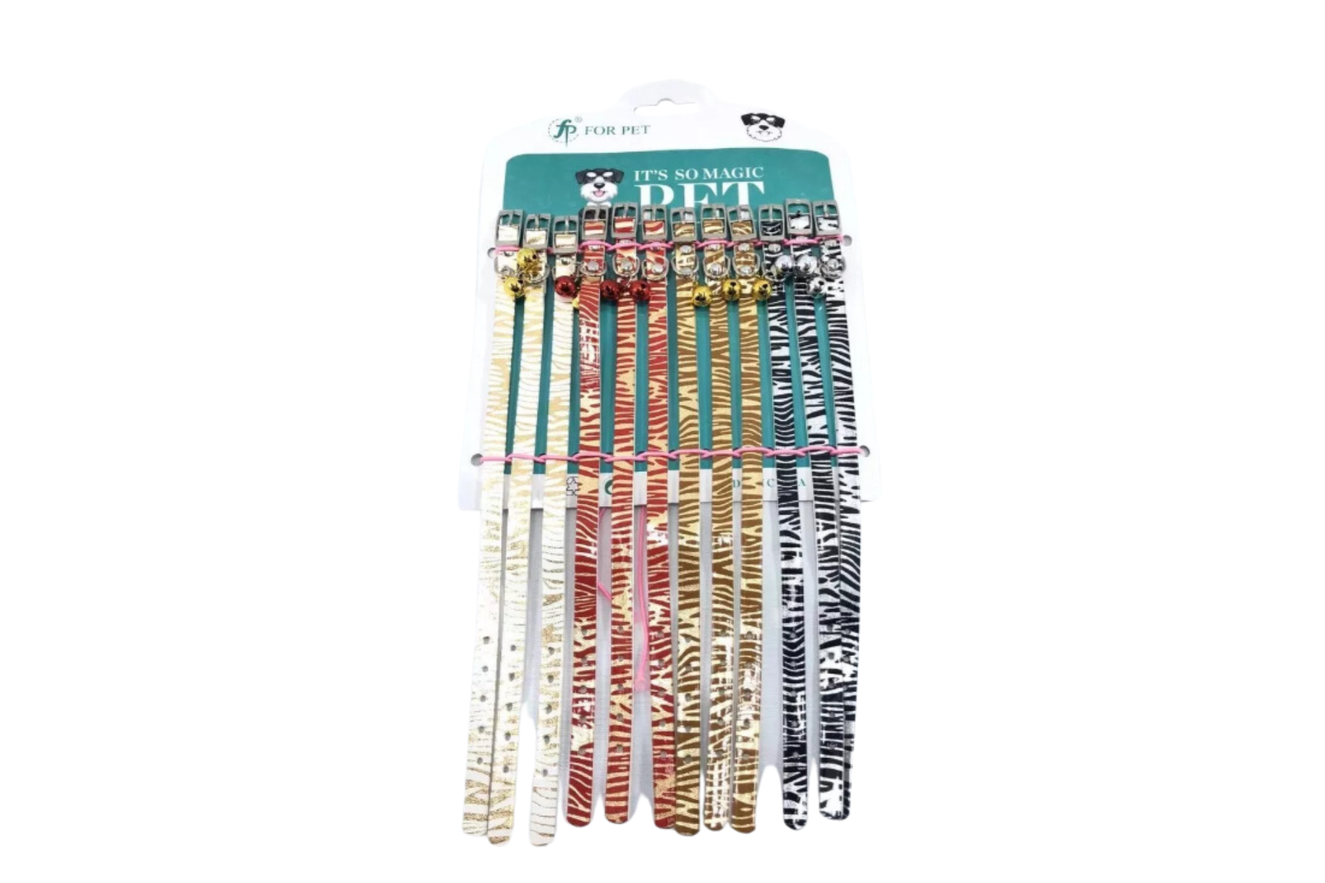 COLLAR GATO BLISTER X 12 UN ANIMAL PRINT DORADO